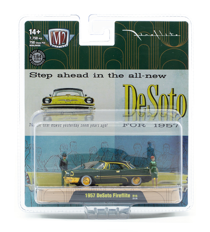 1957 DeSoto Fireflite in Dark Green with Gold Chrome Accents - Includes Two Themed Figures