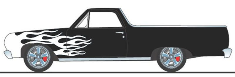 1965 Chevrolet El Camino Custom Cruiser in Tuxedo Black with White Flames