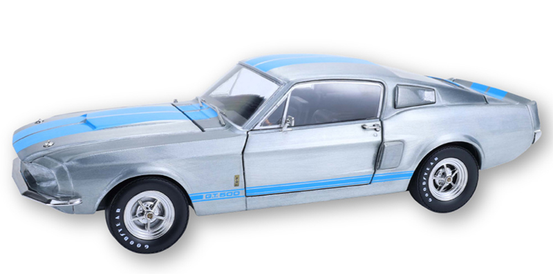 1967 Shelby GT-500 Highway Launch Edition in Raw Body Grey with Blue Stripe - Greenlight Waltersons Product Expo Exclusive