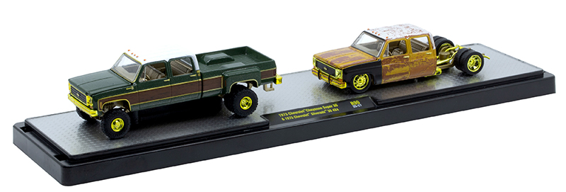 1973 Chevrolet Cheyenne Super 30 and 1975 Chevrolet Silverado 30 4X4 with Gold Rims and Accents