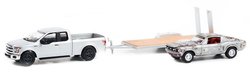 2015 Ford F-150 Pickup with 1968 Ford Mustang GT Fastback on Flatbed Trailer