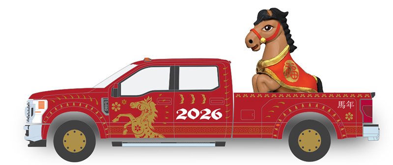 2026 Year of the Horse - 2022 Ford F-450 - Chinese Zodiac 2026 Year of the Horse with Horse Accessory - Acrylic Box Pack