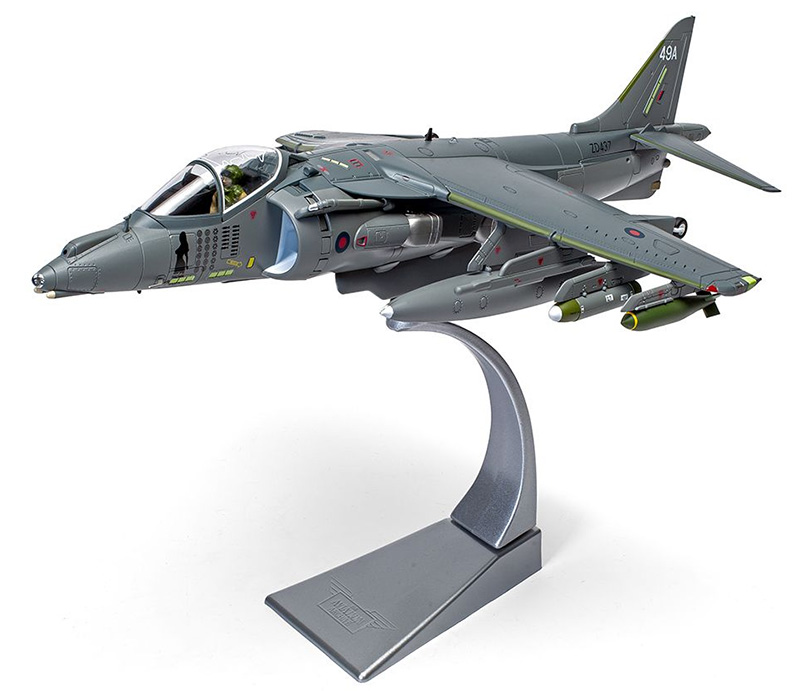 Marking a significant development in the history of this magnificent aircraft, the Harrier II may have shared many visual similarities with its famous VSTOL predecessor, however, was actually a very different aeroplane altogether, one which owed much to the American McDonnell Douglas Corporation. Essentially, this new generation of Harrier was a completely different aircraft, a much more capable aeroplane in every respect and a space age development of this now familiar VSTOL Harrier theme. This programme would eventually result in the introduction of the much more capable British Harrier GR.5 in 1987 and further successive upgrades over the next couple of decades which would maintain the Harrier's position as one of the world's foremost strike/attack aircraft and one which possessed such unique attributes that it was described by many as being the most valuable fixed wing aviation asset available to any air arm in the world.With increased range, power and weapons carrying capability, this new generation of Harrier was intended to strike hard and fast, often at the outset of any military contact engagement, before returning once refuelled and rearmed to support infantry units in their endeavours. Always on station and always in the thick of the action, is it any wonder why military personnel held the Harrier in the same affection in which the public always have. This upgrade development only served to enhance the legacy of the Harrier, with this later generation of aircraft regarded as arguably the most flexible av