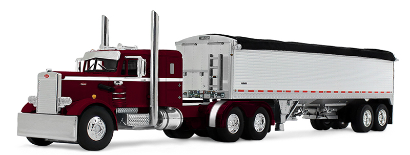 Peterbilt Model 351 with 36" Sleeper in Dark Cherry and White and 34' Wilson Pacesetter Grain Trailer