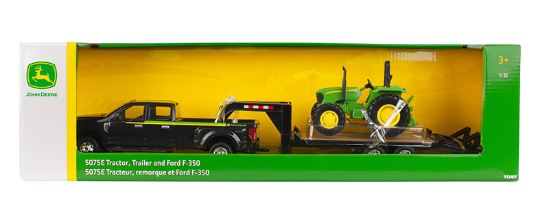 John Deere 2017 Ford F-350 with 5th Wheel Trailer Hauling a John Deere 5075E Tractor