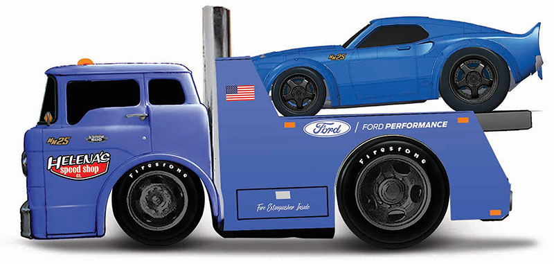 Helena's Special Shop - 1966 Ford C60 Flatbed in Blue with 1969 Ford Mustang GT in Blue