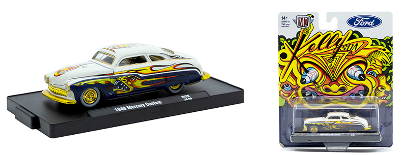 1949 Mercury Custom in White and Black with Yellow Flame Decals with Gold Chrome Rims