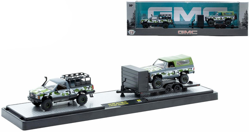 1998 GMC Sierra 1500 4X4 and 1973 GMC Jimmy Sierra 4X4 in Blue with Green and White Camo