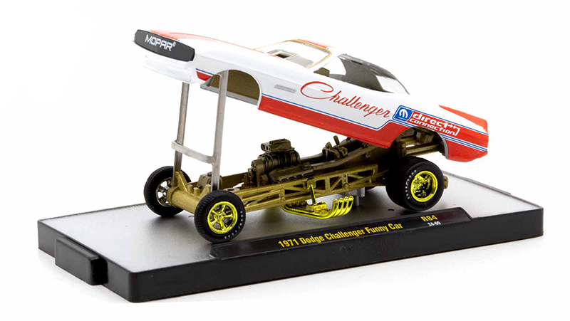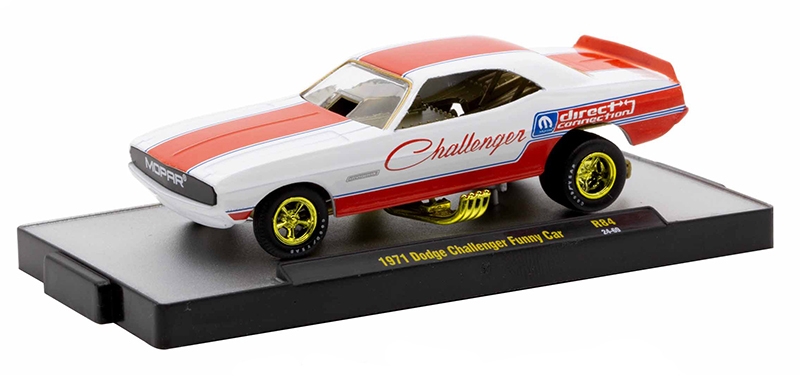 Mopar - 1971 Dodge Challenger Funny Car in White and Red with Gold Frame Rims and Accents