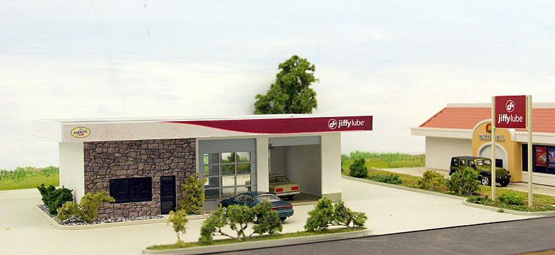 Photos are of completed model - assembly and painting are required. Parking lot base, cars, scenic details, and paint are NOT included.