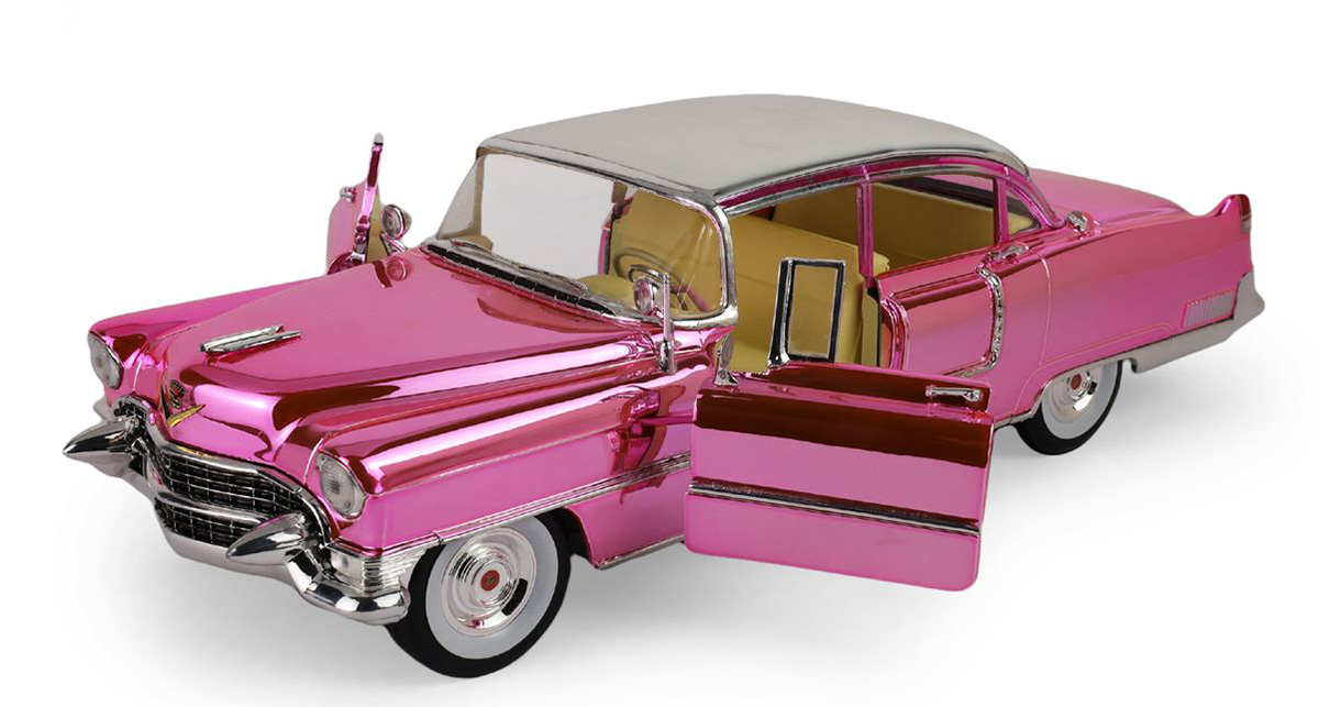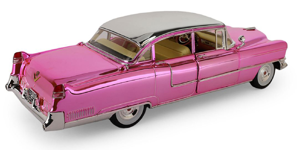 1955 Cadillac Fleetwood Series 60 "Pink Cadillac" Chrome Edition with Elvis Gold Suit Figure - Elvis Presley (1935-77)