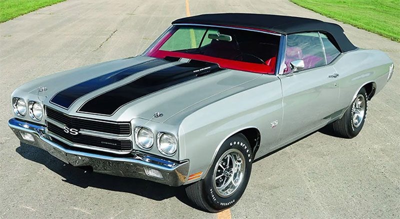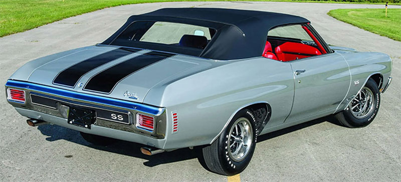 1970 Chevrolet Chevelle SS LS6 Convertible in Cortez Silver with Black Stripes and Red Interior - 1 of 1 Color Combo