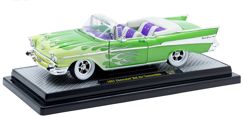 1957 Chevrolet Bel Air Convertible in Two-Tone Green Flame Graphics with Purple and White Interior and Chrome Accents