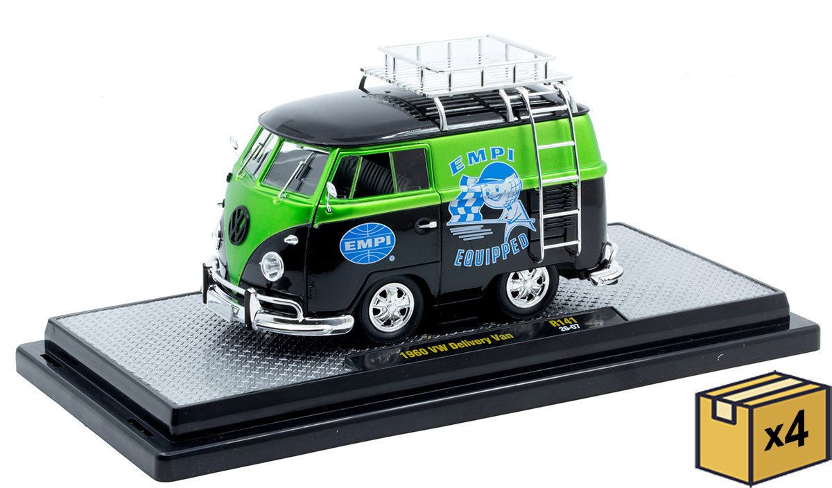 1960 Volkswagen Delivery Van in Black and Green with Silver Chrome Accents and EMPI Graphics in a Non-Returnable 4-Piece CASE