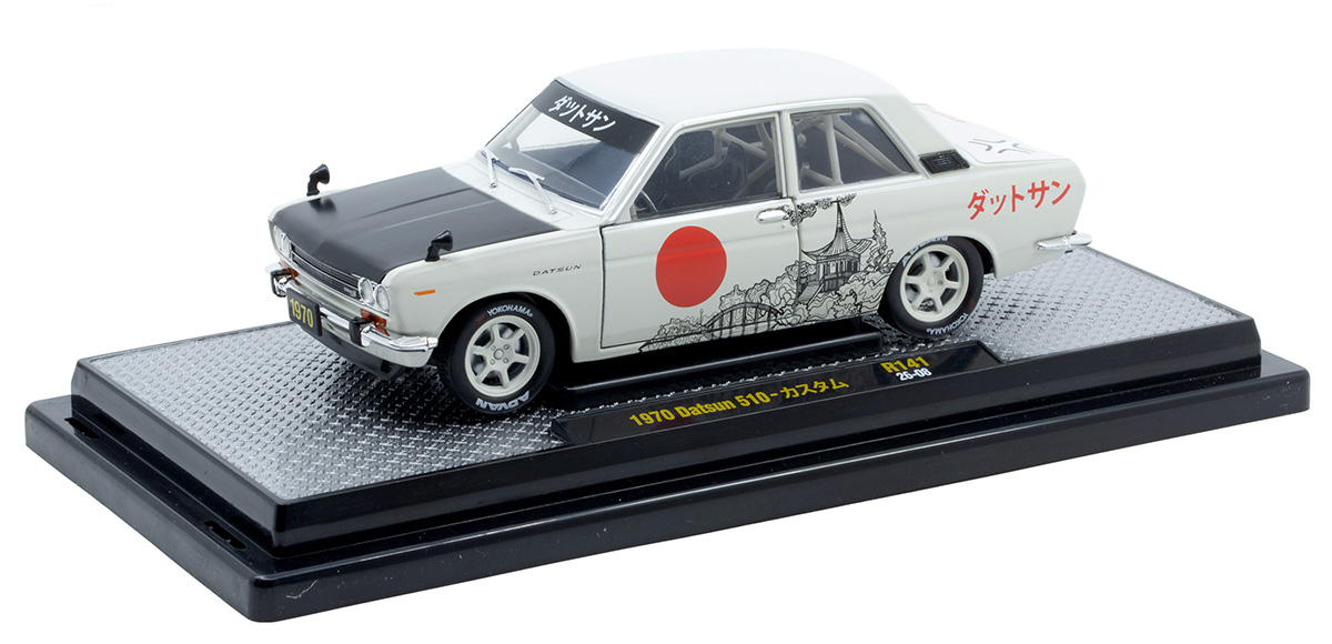1970 Datsun 510 in White with Flat Black Hood and Nihon Graphics