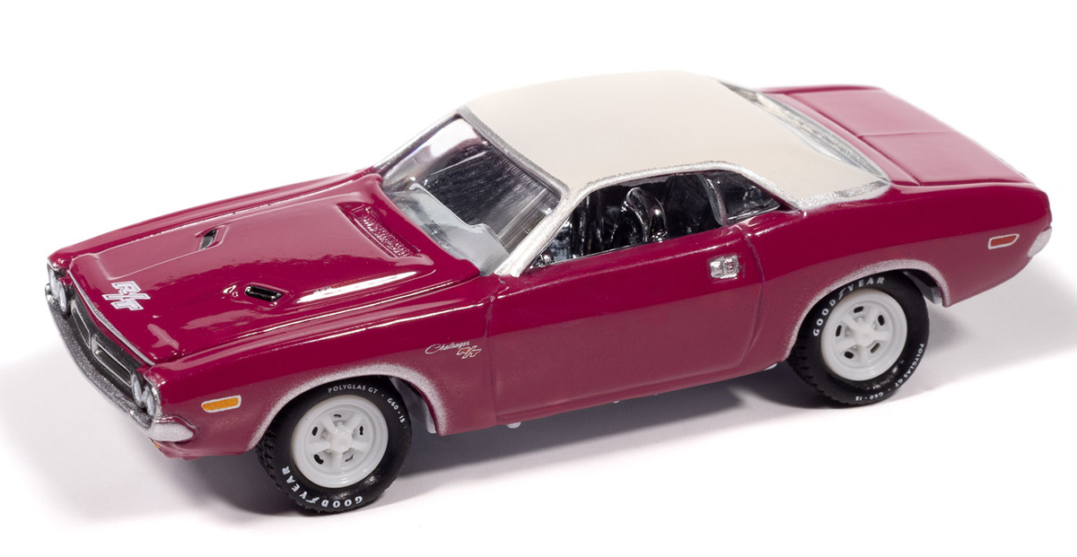 1971 Dodge Challenger R/T in Panther Pink with White Top Chassis and Rims