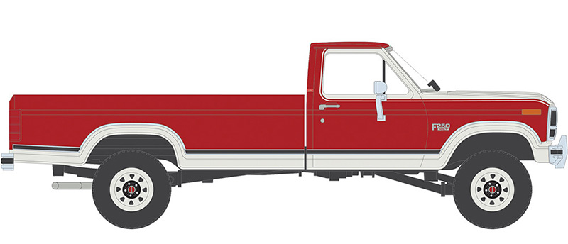 1984 Ford F-250 XLT Lariat Long Bed Styleside 4x4 in Victoria Tu-Tone Bright Canyon Red and Wimbledon White