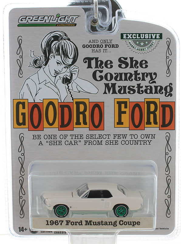 1967 Ford Mustang Coupe in Bermuda Sand She Country Special Bill Goodro Ford Denver Colorado Features and Details: Hobby Exclusive Authentic Decoration Chrome Accents Real Rubber Tires True-to-Scale Detail Limited Edition Photo is pre-production sample f