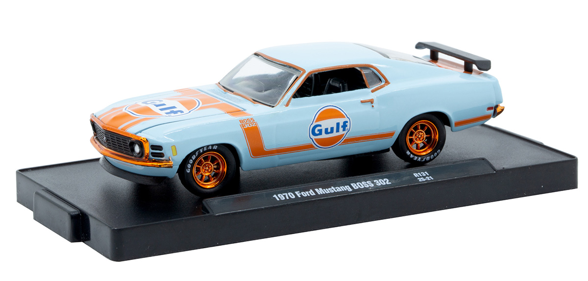 Gulf - 1970 Ford Mustang BOSS 302 in Blue and Orange with Orange Chrome Rims and Accents
