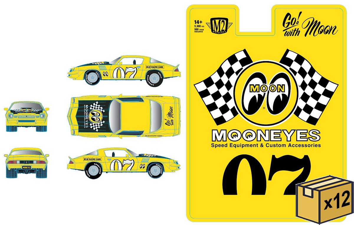 Mooneyes - 1979 Chevrolet Camaro Z/28 in Yellow with Black Hood and #07 Racing Graphics - 12 Pieces in a Non-Returnable Case