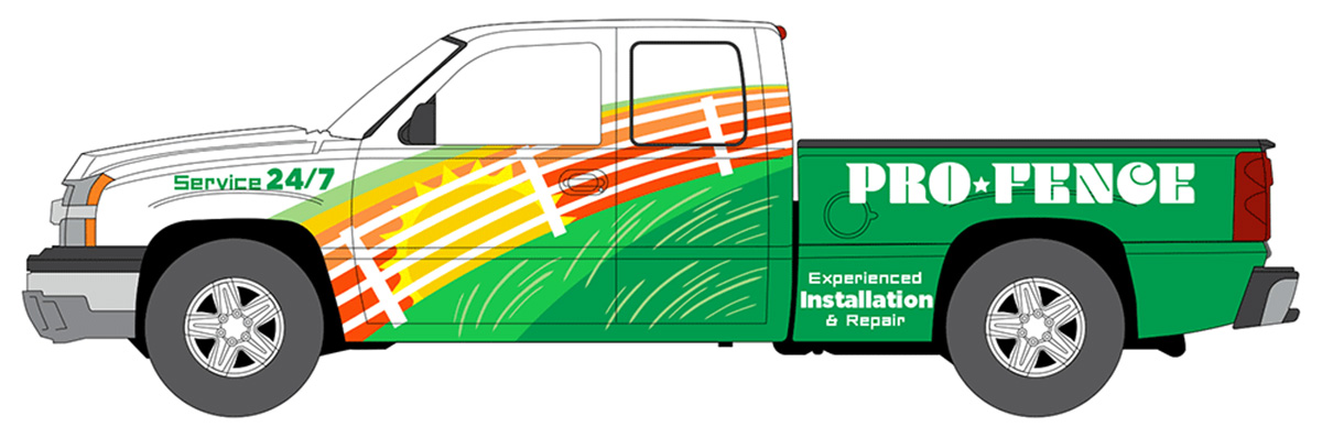 Pro Fencing - 2003 Chevrolet Silverado Pickup Truck in White with Full Color Wrap and Green