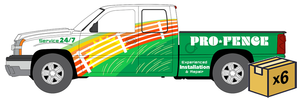 Pro Fencing - 2003 Chevrolet Silverado Pickup Truck in White with Full Color Wrap and Green Bed - 6-Piece Set in a