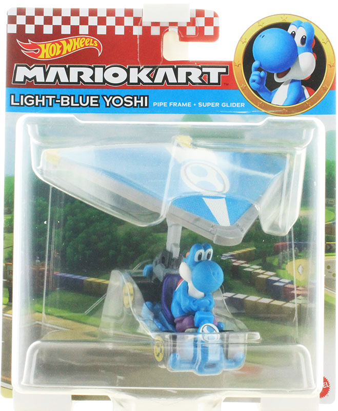 Light-Blue Yoshi in Pipe-Frame Kart with Super Glider