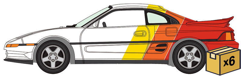 1991 Toyota MR2 in White, Yellow, Orange, and Red - 6 Pieces in a Non-Returnable, Factory-Sealed CASE