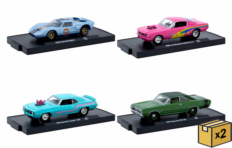 Two 4-Piece Sets. Each car is separately packaged in blister card packaging. Look for M2Machines' rare Chase Cars inserted into cases at random.