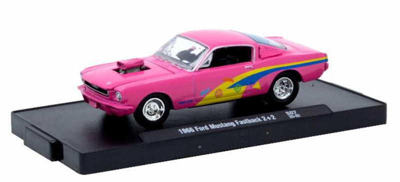 • 1966 Ford Mustang Fastback 2+2 in Pink with Blue and Yellow Stripes