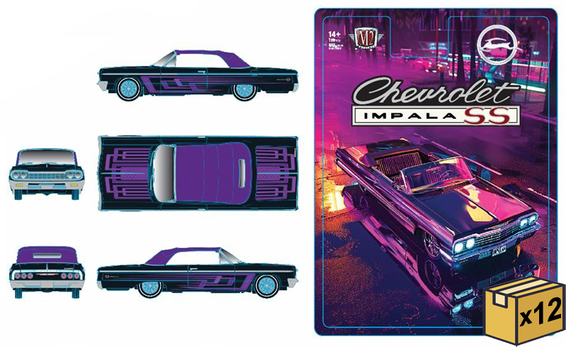 1964 Chevrolet Impala SS 409 Convertible in Black with Electric Purple Patterns and Pinstripes - 12 Pieces in a Non-Returnable Case