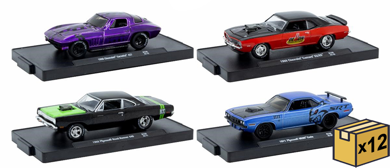 Twelve 4-Piece Sets. Each car is separately packaged in blister card packaging. Look for M2Machines' rare Chase Cars inserted into cases at random.