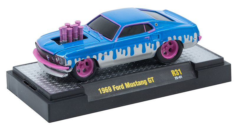 1969 Ford Mustang GT in Pink, Blue and Silver with Pink Tires