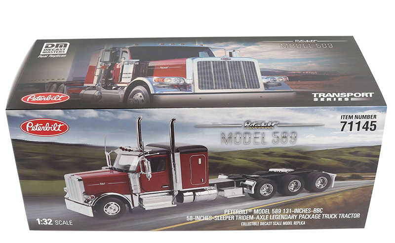 Peterbilt Model 589 131" BBC Configuration with 58" Sleeper and Tridem Axle Semi in Legendary Red