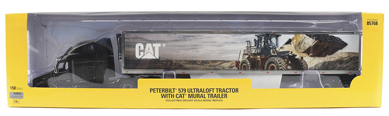 NEWFree Ship* (Free Shipping to street addresses within continental U.S.) Peterbilt 579 Ultra Loft Tractor in Black with Caterpillar Mural Trailer