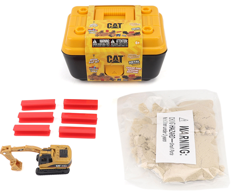 Each model is packed in tool box packaging with motion sand and surprise tools - items cannot be identified without opening