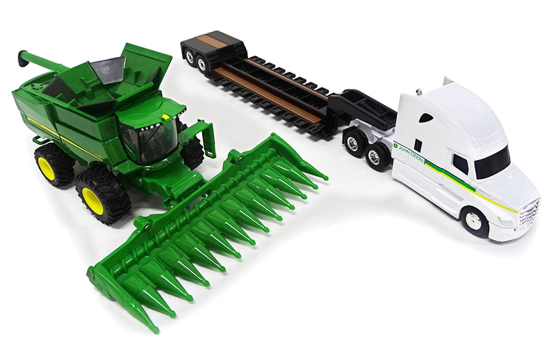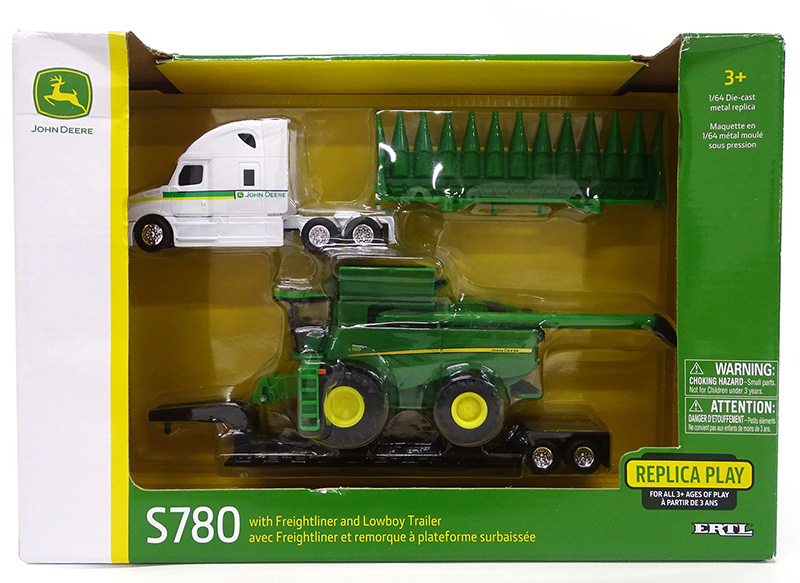 John Deere S780 Combine with Freightliner Cascadia Semi Truck and Lowboy Trailer - LP68846