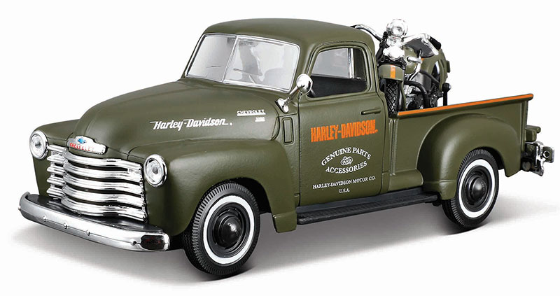 Harley-Davidson - 1950 Chevrolet 3100 Pickup Truck in Green Hauling a 1936 Harley Davidson El Knucklehead