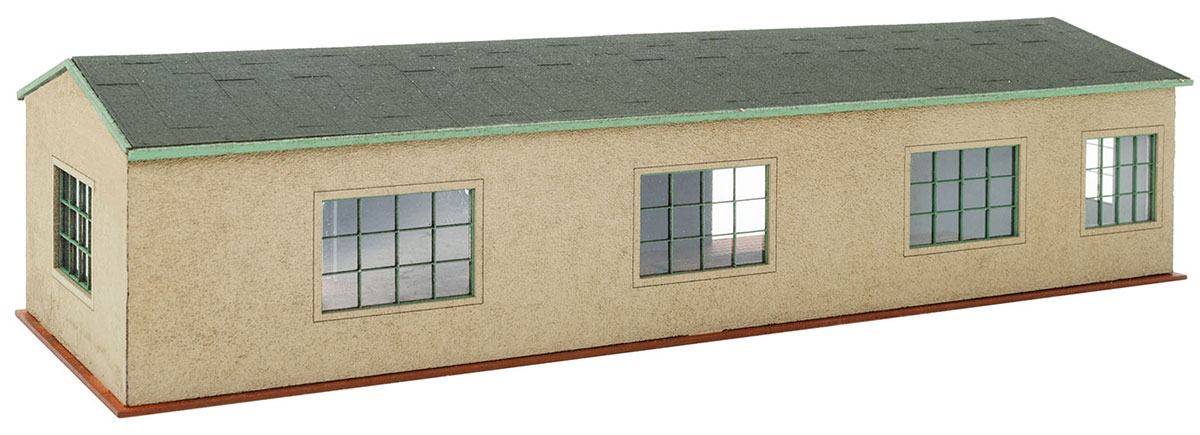 Timeless workshop building with plaster facade made of Polyplate composite material.