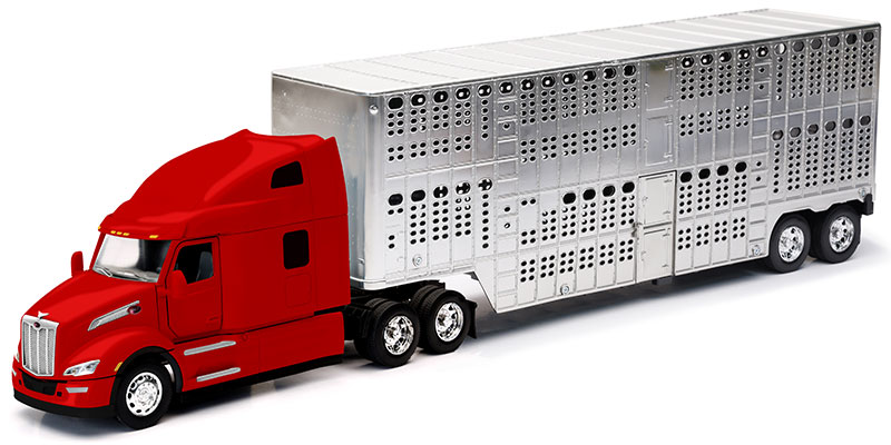 Peterbilt 579 Sleeper Cab in Red with Chrome Livestock Trailer
