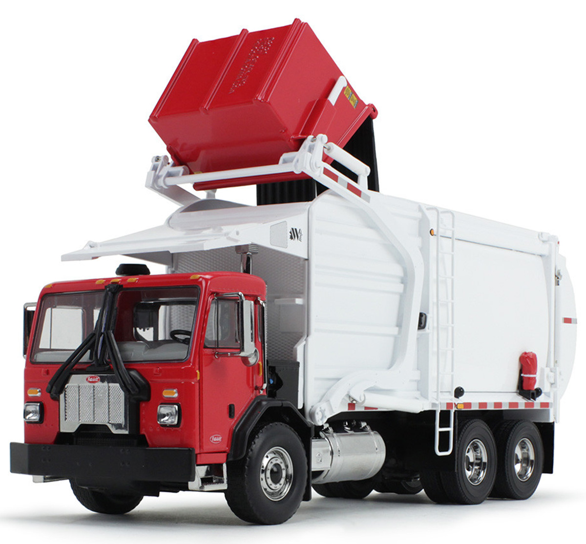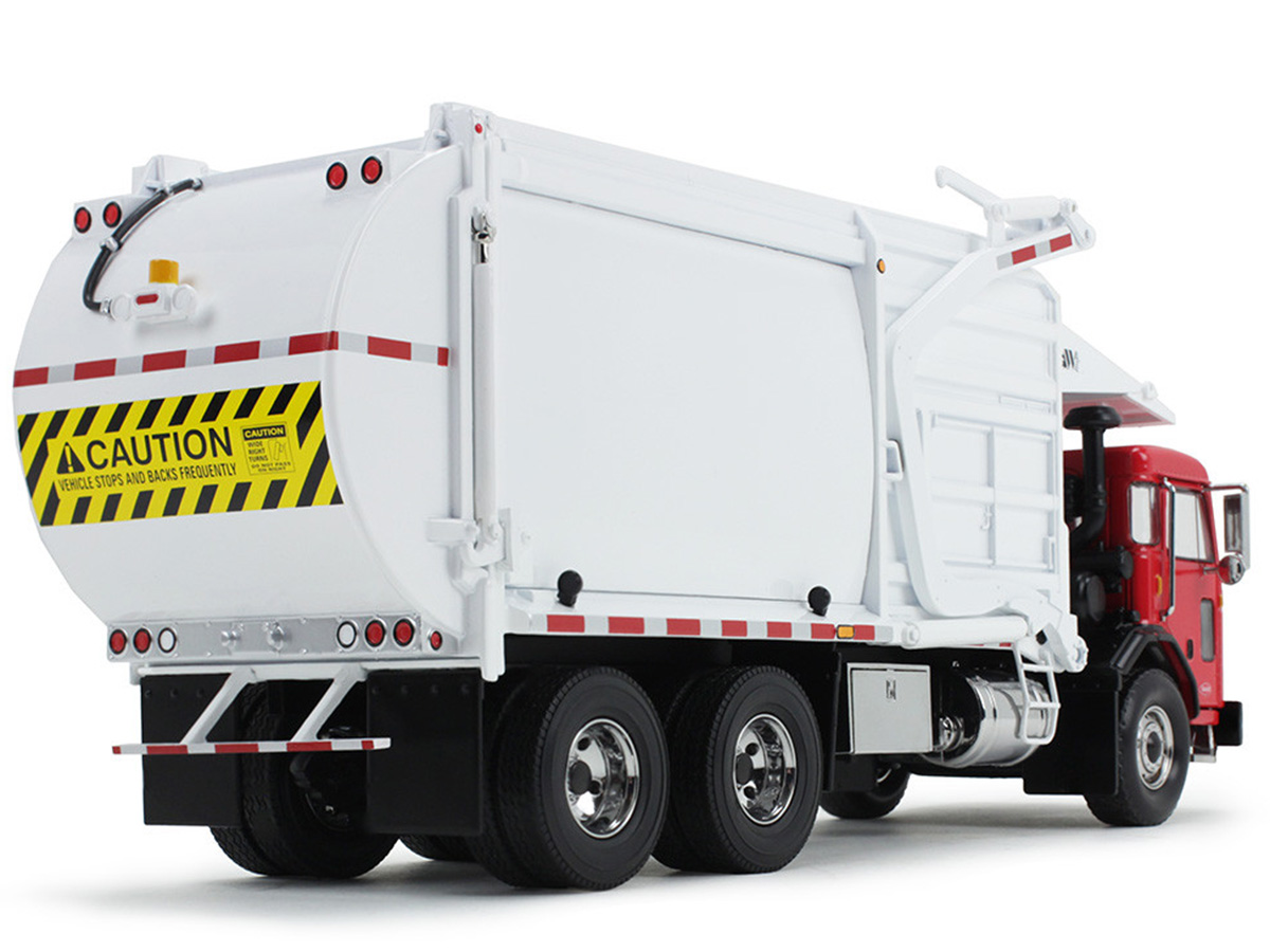 Peterbilt Model 520 Refuse Truck with Wittke Front End Loader with Bin in Red and White