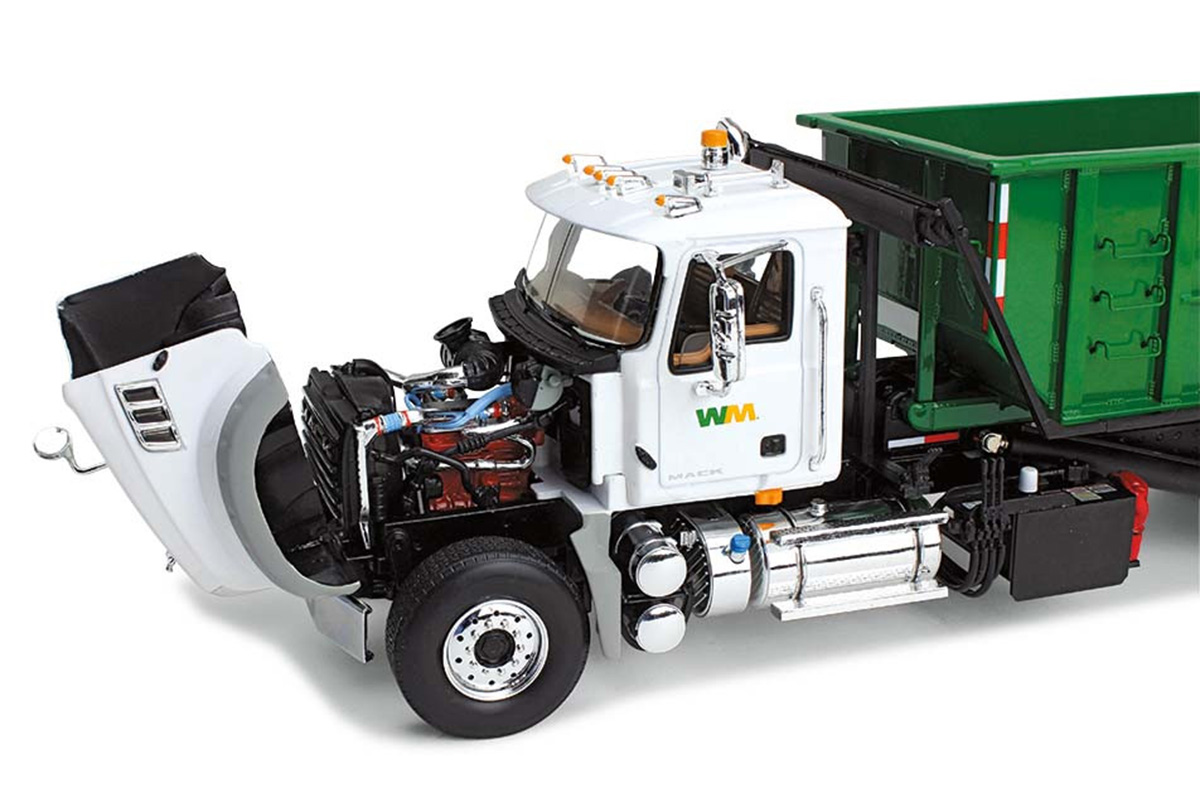 Waste Management - Mack Granite MP with Ribbed Roll-Off Container and Large Signboard