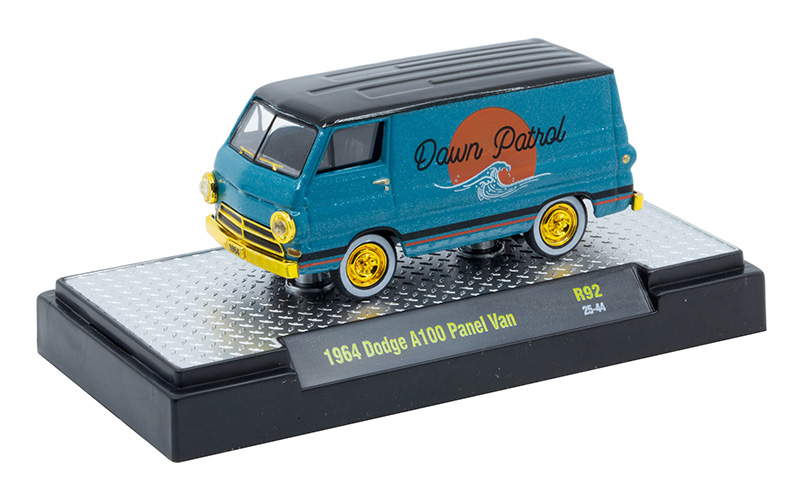1964 Dodge A100 Panel Van in Blue with Black Roof and Gold Rims and Accents