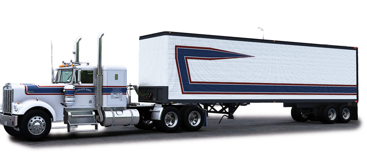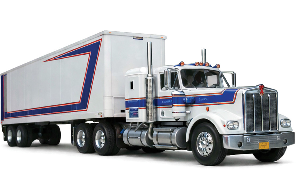 1976 Kenworth W900 with Vintage Trailer in Red, White, Blue