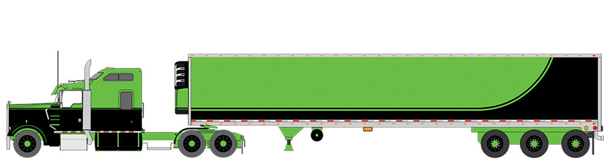 1990 Kenworth W900 with Refer Van in Neon Green and Black