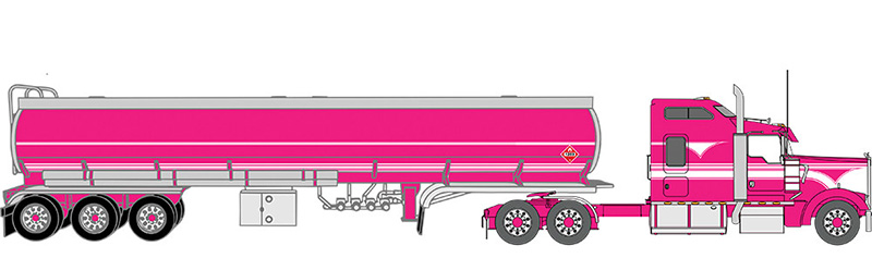 990 Kenworth W900 Semi with Tri Axle Petroleum Tanker in Pink