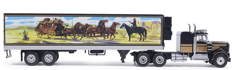 1976 Kenworth W900 in Black with Trailer Decorated with Stagecoach Robbery Mural