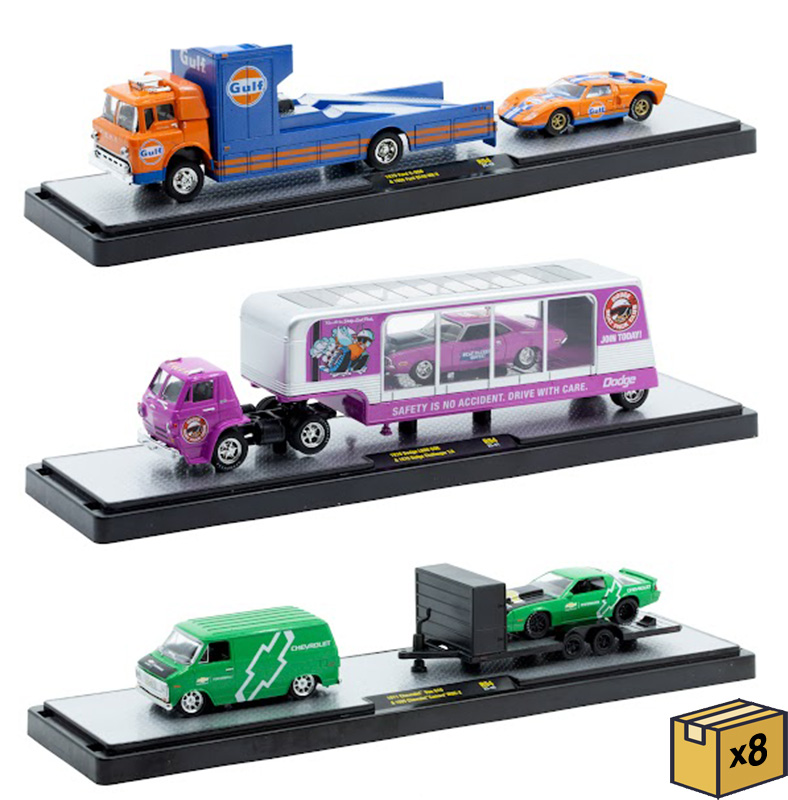 Eight 3-Piece Sets. Each car comes in an acrylic case with pegable packaging.