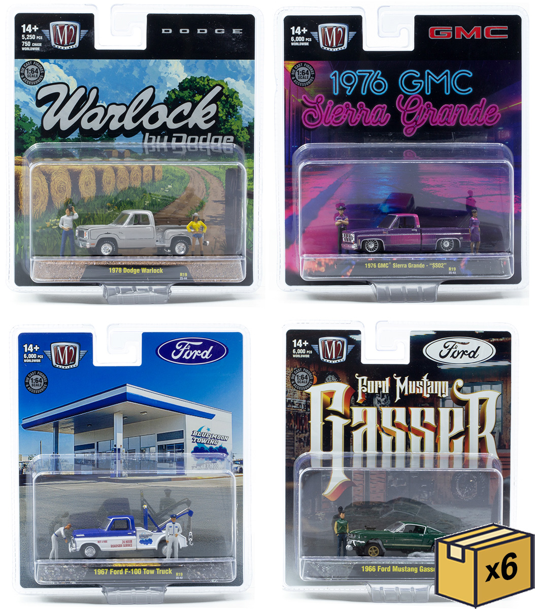 Six 4-Piece High-Detail Sets. Look for M2Machines' rare Chase Cars inserted into cases at random.