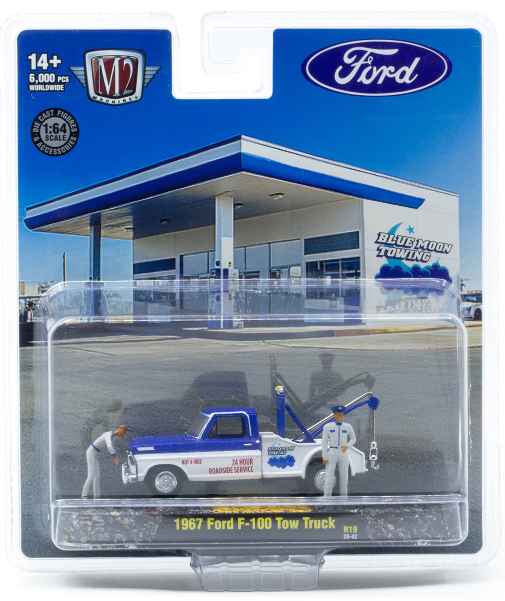 • 1967 Ford F-100 in Blue and White with Mechanic and Station Attendant Figures